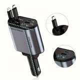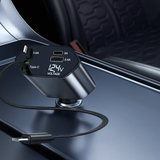 Smart Retractable Car Charger – Dual Cables & Voltage Display 180° Rotating Base