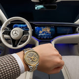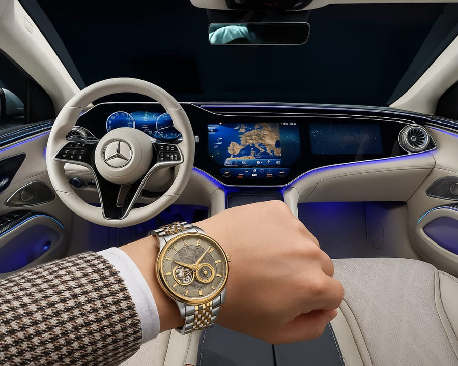 In Saudi roads or American highways, luxury doesn’t stop at your car. This watch blends seamlessly with a Mercedes interior—precision, prestige, and performance on your wrist.